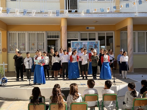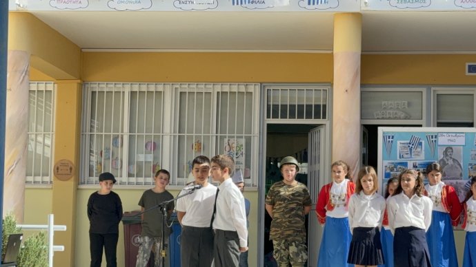 Πραγματοποιήθηκε στο σχολείο μας ενδοσχολική εκδήλωση για τον εορτασμό της 28ης Οκτωβρίου 1940. Οι μαθητές και μαθήτριες του σχολείου μας έλαβαν μέρος στην μαθητική παρέλαση που διοργανώνεται στην κοινότητα.